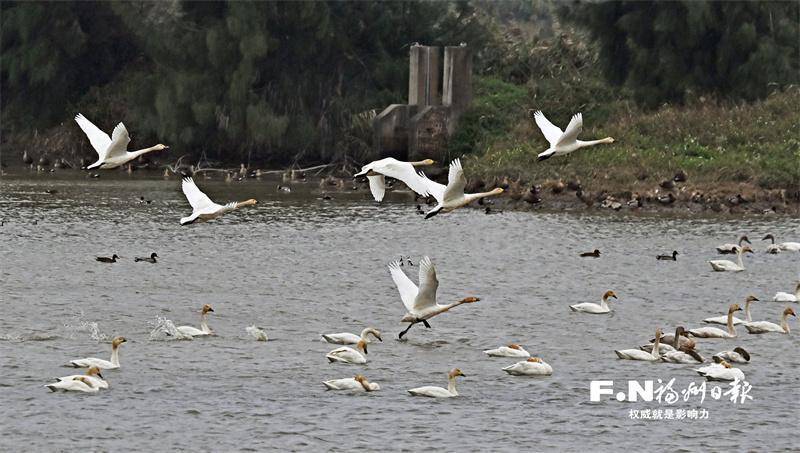 天鹅在闽江河口湿地起舞康乾配资。福州日报记者 郑帅摄