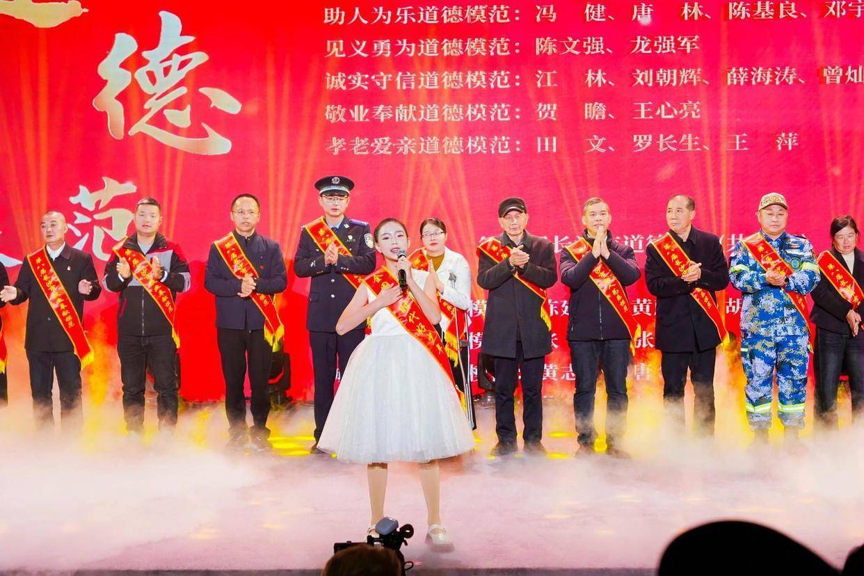 随后的颁奖与事迹宣讲环节庄重而感人。活动分“见义勇为”“敬业奉献”“诚实守信”“孝老爱亲”“助人为乐”五个类别,依次为道德模范颁奖。每一轮颁奖后,都配以形式新颖、情感真挚的事迹报告。