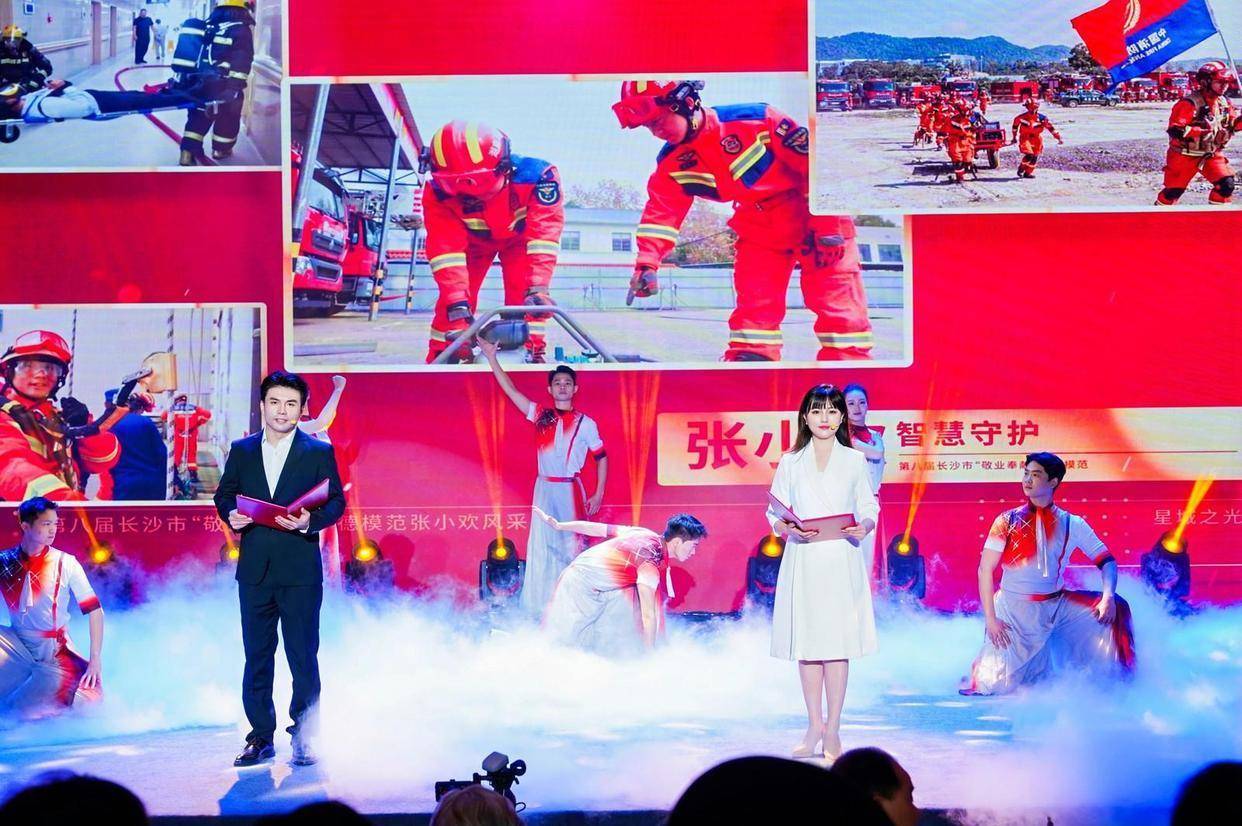 音诗画报告《星城之光》以声光交织的舞台语言,深情勾勒出“快递管家”黄波百万包裹零差错的敬业传奇、“城市清道夫”胡连喜三十七年疏通城市血脉的默默坚守、“明星校长”谭继红以文明理念浇灌幸福校园的育人初心、“消防先锋”张小欢十六年逆向而行、以创新装备守护生命的火场英姿,以及“辣椒院士”杨意红六十载扎根土地、用一粒种子富一方百姓的动人故事盛盈优配,共同谱写了一曲平凡岗位上绽放不平凡匠心的时代赞歌。